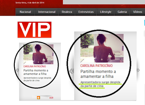 Isto é o 'anuncio' ... e isto a notícia Eu não vou dizer que ela não está a amamentar a filha (longe de mim), embora o facto de tar de costas não garanta nada. Eu concordo que todas as notícias que promovam a amamentação são bem vindas (embora (...)